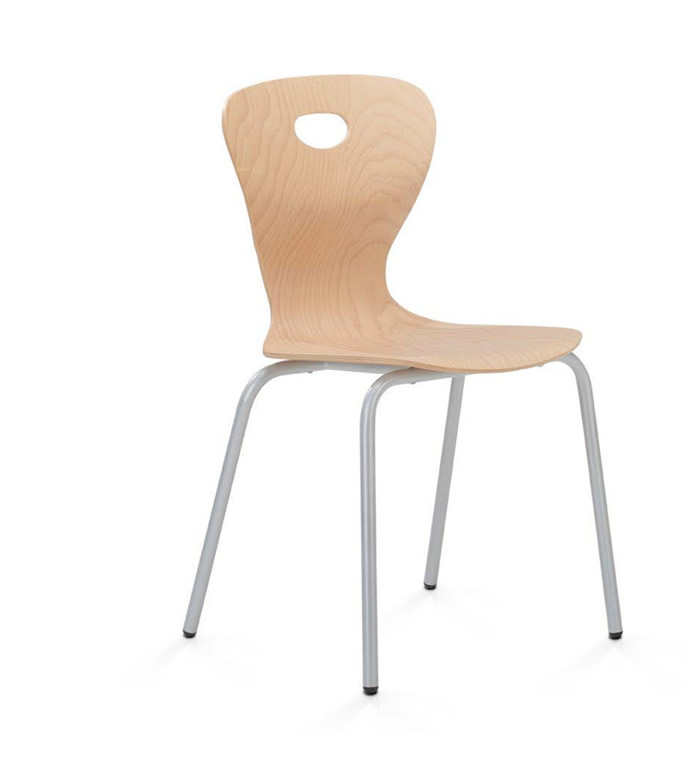 È allestita con una monoscocca realizzata interamente in multistrati di faggio FSC, E1, stampata in un unico pezzo, anatomica, a sagomatura multipla, particolarmente comoda. Dalle forme morbide e sinuose che segue le linee naturali del corpo, è dotata di un elevato comfort; disegnata dalla R&S CamilloSirianni per ottenere una accurata ergonomia, incoraggia una postura corretta e confortevole. È munita di un foro nello schienale che ne agevola gli spostamenti nel corso delle attività. Sovrapponibile. Consente molteplici posizioni di utilizzo.