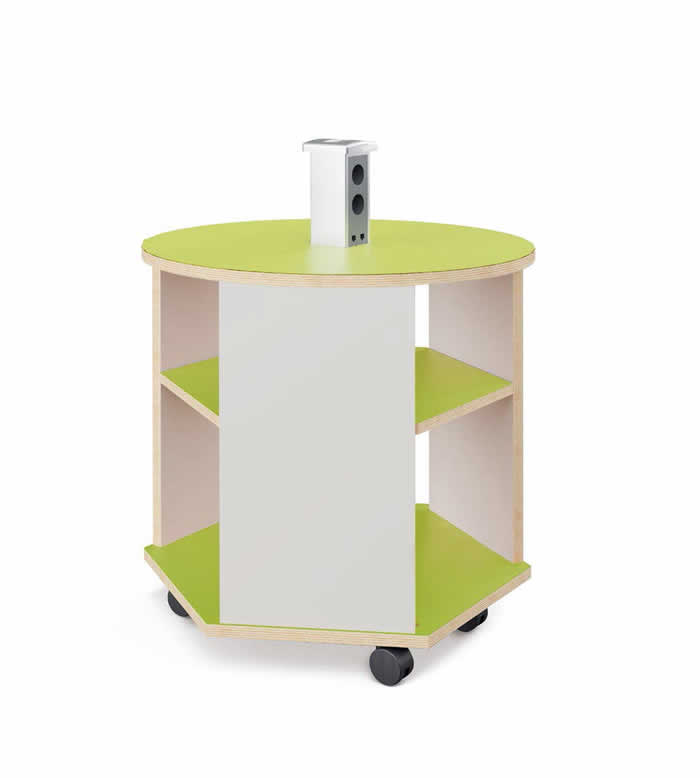 I mobili predisposti per accogliere la torretta estraibile, sono utilizzati come elementi centrali nelle composizioni con i banchi trapezoidali. Rappresentano una soluzione funzionale e innovativa, spesso utilizzata negli ambienti scolastici, spazi collaborativi, uffici, aree educative e formative. Questi arredi uniscono la forma geometrica circolare, ideale per favorire la modularità, con la praticità della torretta estraibile che consente l’accesso a diverse risorse e connessioni. Le ruote alla base ne garantiscono una semplice movibilità e configurabilità all’interno degli ambienti. Specifiche tecniche: