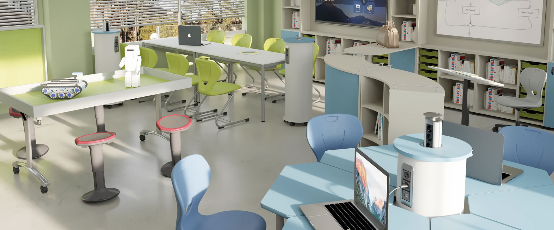 Camillo Sirianni presenta una ampia gamma di arredi stimolanti che, grazie al loro design, possono essere utilizzati per creare spazi pratici e multifunzionali. Tutte le linee d’arredo nascono per interagire con le esigenze delle nuove metodologie didattiche: permettono lo svolgimento di una ampia gamma di attività, anche in ambienti esterni all’aula come lavori di gruppo, ore di studio individuale, momenti di svago. Questo perché tutti gli spazi di una Scuola, dalle classi all’Atrio, dai corridoi agli spazi comuni, devono essere utilizzati e l’arredo deve consentire modifiche funzionali, rapide e veloci, in grado di adattarsi alle necessità didattiche e ai diversi metodi di insegnamento. Elementi d’arredo che permettono, senza creare confusione o richiedere troppo tempo, di configurare in modi diversi uno stesso spazio, mantenendolo, al contempo, ben strutturato e organizzato. Studenti e Insegnanti, senza bisogno di alcun supporto esterno, possono configurare autonomamente gli ambienti in cui operano; una maggiore libertà che permette di realizzare la nuova didattica.