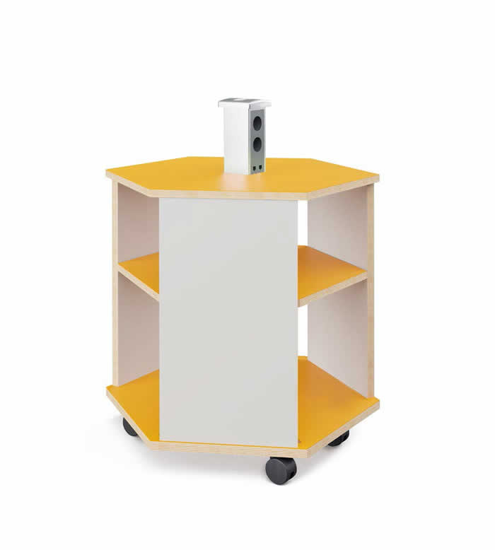 I mobili esagonali predisposti per accogliere la torretta estraibile, sono utilizzati come elementi centrali nelle composizioni con i banchi trapezoidali. Rappresentano una soluzione funzionale e innovativa, spesso utilizzata negli ambienti scolastici, spazi collaborativi, uffici, aree educative e formative. Questi arredi uniscono la forma geometrica esagonale, ideale per favorire la modularità, con la praticità della torretta estraibile che consente l’accesso a diverse risorse e connessioni. Le ruote alla base ne garantiscono una semplice movibilità e configurabilità all’interno degli ambienti. Specifiche tecniche: